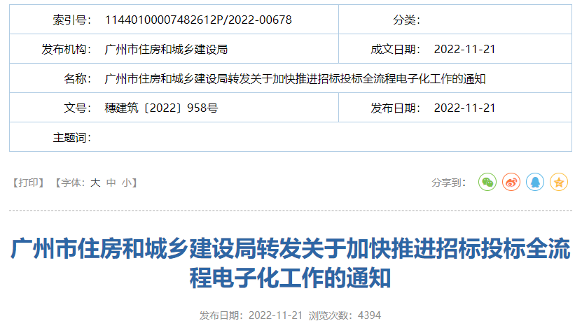 昨天,廣州市住建局轉(zhuǎn)發(fā)關(guān)于加快推進(jìn)招標(biāo)投標(biāo)全流程電子化工作的通知,明確: