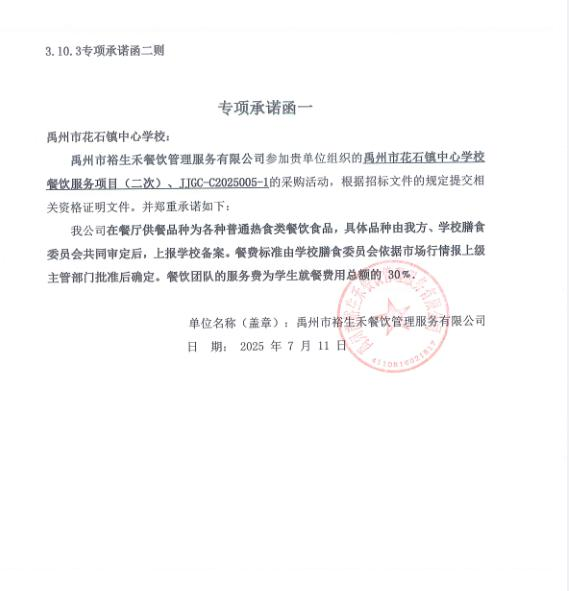 (一)項目名稱:禹州市花石鎮中心學校餐飲服務項目(二次);